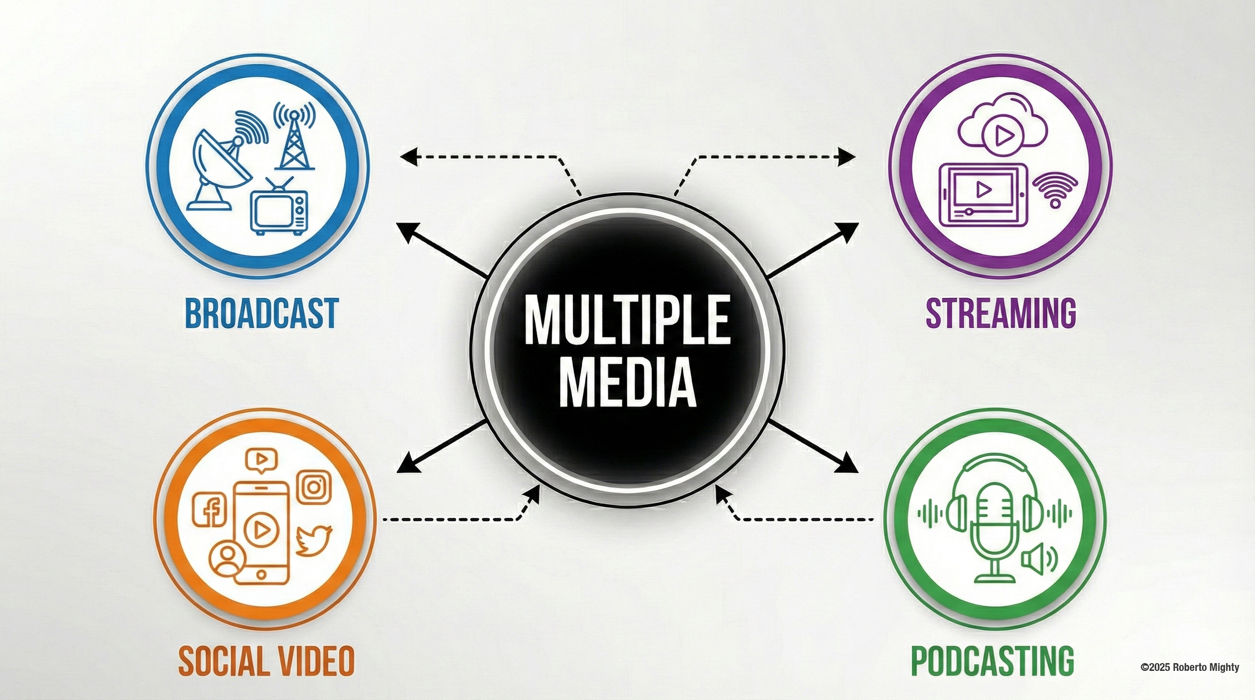 • Broadcast, Streaming, Vertical, Podcast and Social Streams